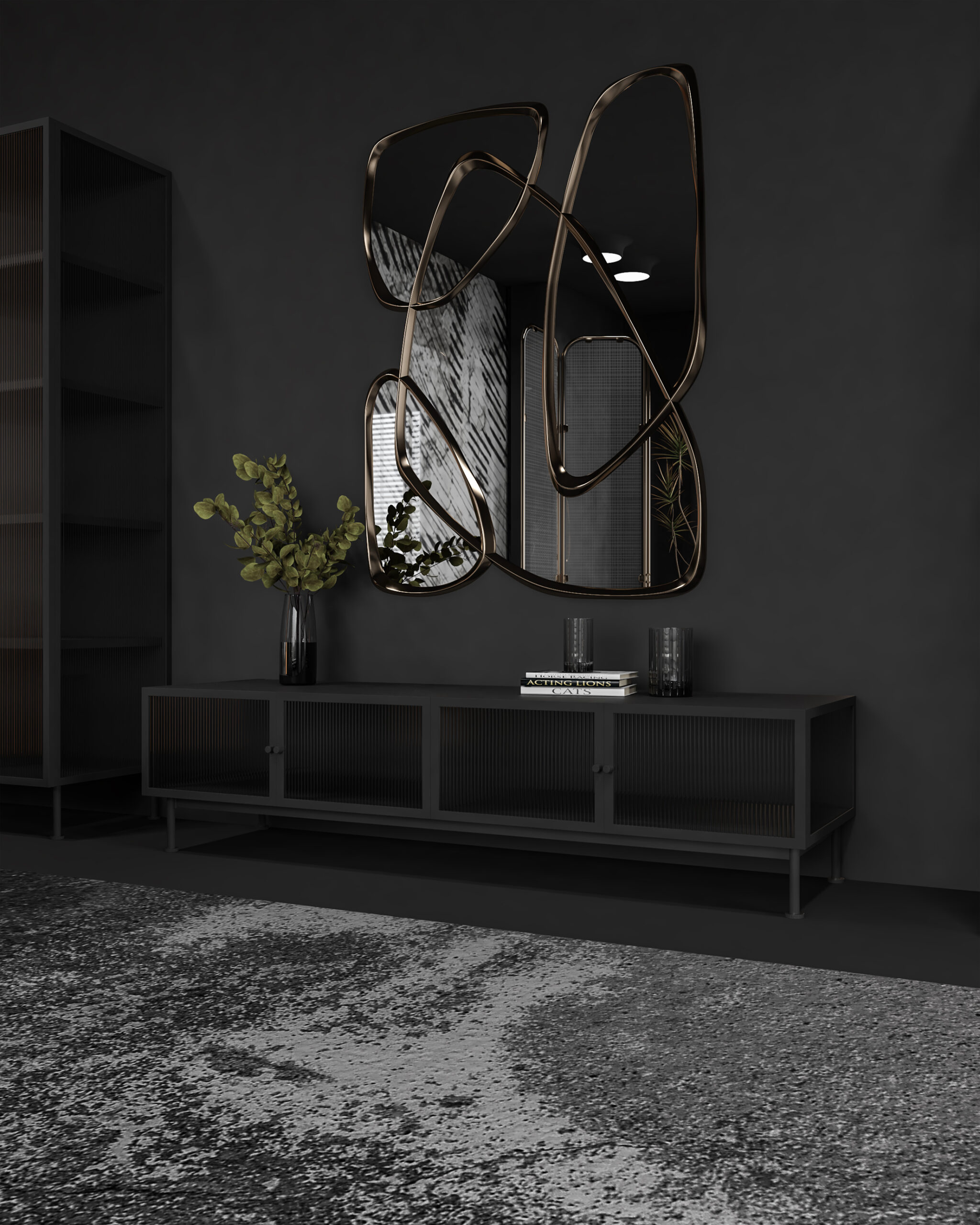 The Aurum Geometric Mirror stands out with its asymmetric gold frame and sculptural form. Its bold geometric composition adds modern sophistication and a touch of luxury to any interior.