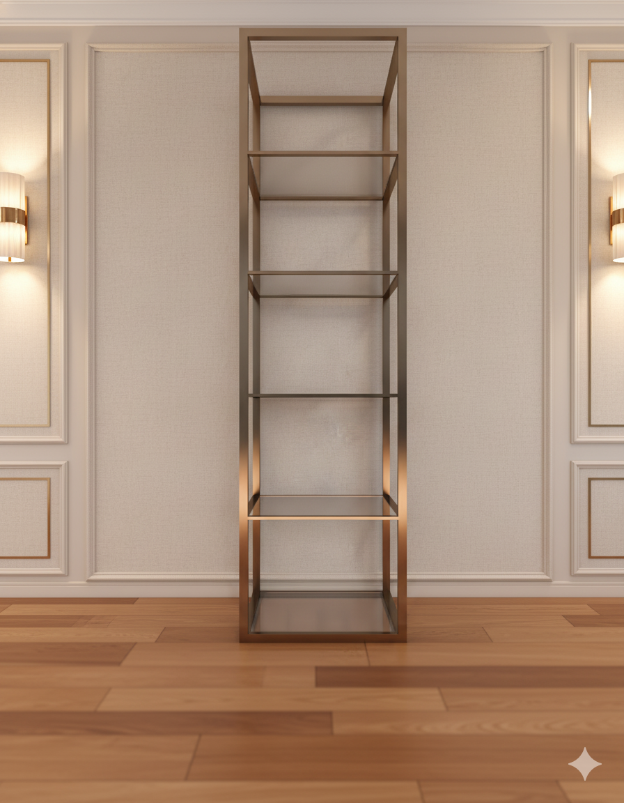 The Modern Minimalist Shelf combines sleek design with functional elegance. Defined by clean lines and a slim metal structure, it serves as both a practical storage solution and a refined decorative element for contemporary interiors.