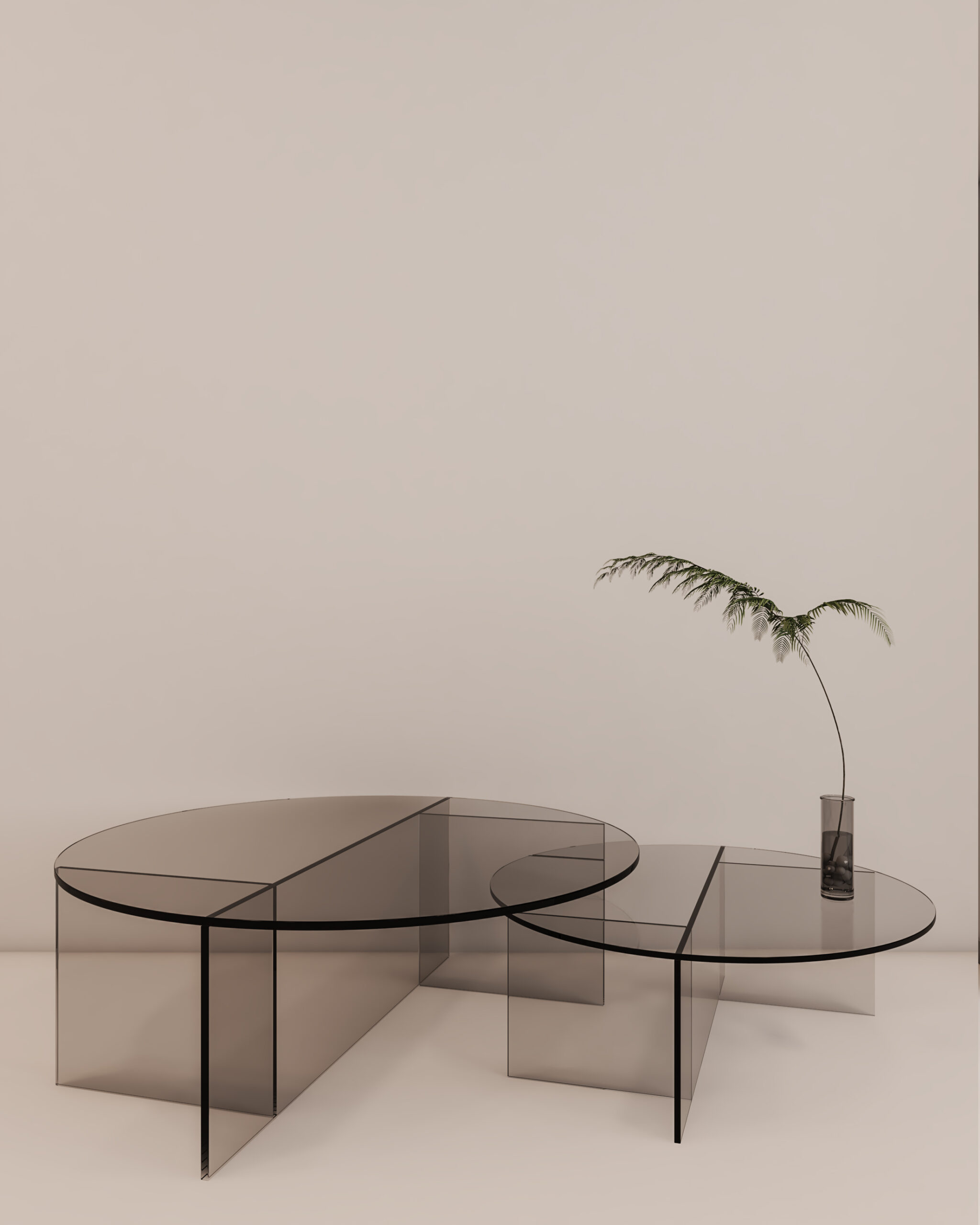 The Contempo Duo Table set features two sleek, rounded glass tables that balance style and functionality. Their tinted glass tops and transparent supports create a refined, contemporary look with a seamless sense of lightness.
