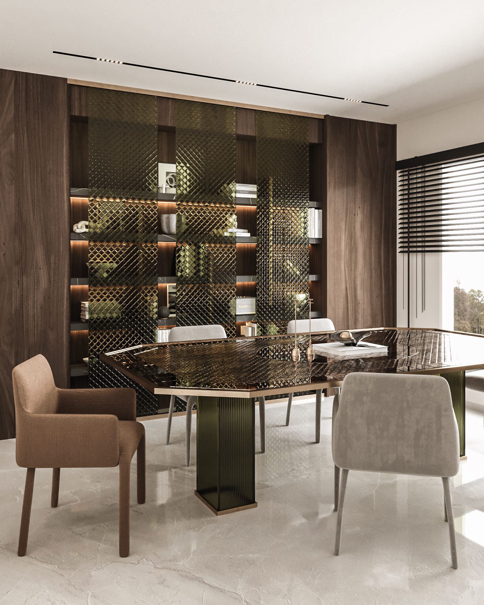 Design: the textured glass and geometric composition create a harmonious balance between elegance and modernity